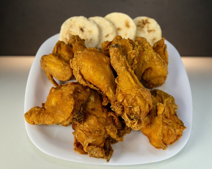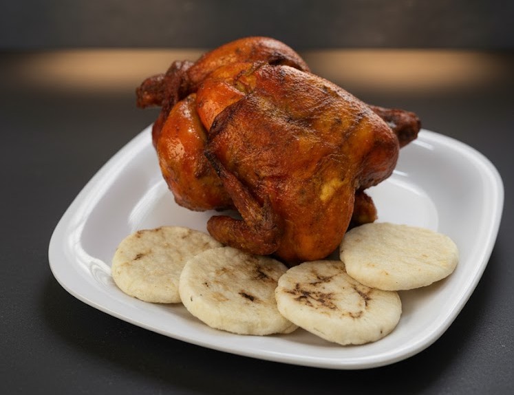 Delicioso Pollo Broaster acompañado con 4 arepas