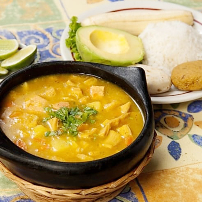 Acompañado de 1/4 de pollo, arroz, papa francesa, yuca, patacón y ensalada.