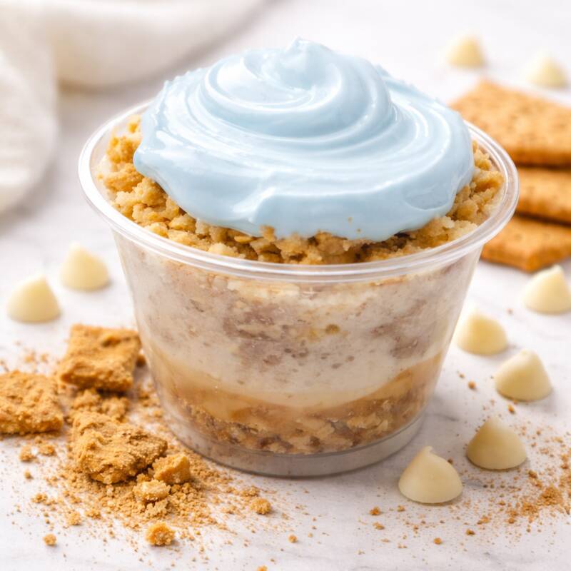 Pie Cuchareable Mango - maracuyá Postre por capas que armoniza diferentes texturas y sabores: base crocante de migas de galleta, suave y cremosa capa de maracuyá, confitura de mango vibrante y un delicado toque de tajín espolvoreado que realza cada cucharada. (peso neto 100g)