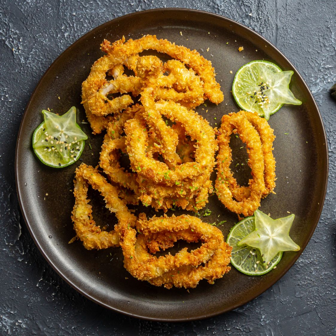 Anillos de calamar apanados en panko.