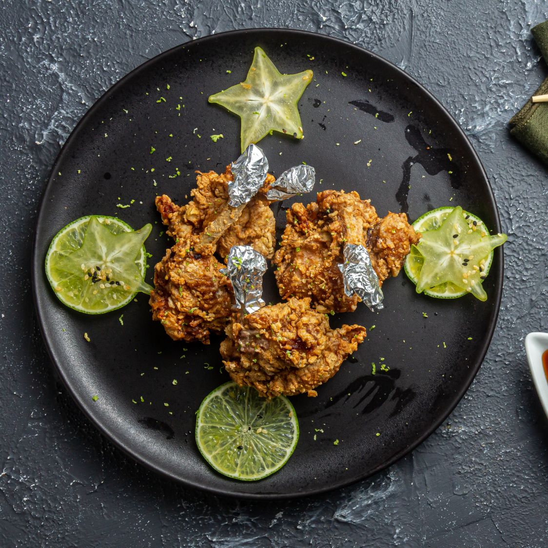 Alitas de pollo marinadas con jengibre y teriyaki.