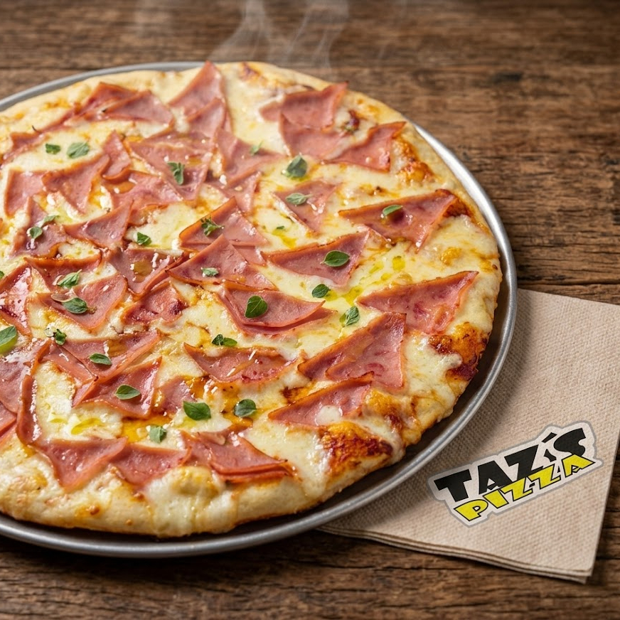 8 porciones de Pizza a base de salsa napolitana, queso mozzarella, con pollo y jamon