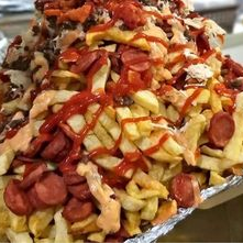 120 Gramos de papas francesa 1 salchicha xl suiza, queso gratinado, salsas de la casa, papita chips.