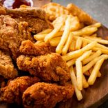 4 Piezas de alitas, 120 gr de papas francesa, salchicha XL suiza, chorizo suizo, butifarra, queso gratinado, papa chips, salsas de la casa.