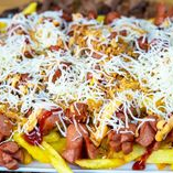 Salchipapa Trifasica, 150gr pasas francesa, 2 salchichas XL suiza, chorizo suizo, butifarra, queso gratinado, papá chips, salsa de la casa + Limonada x2