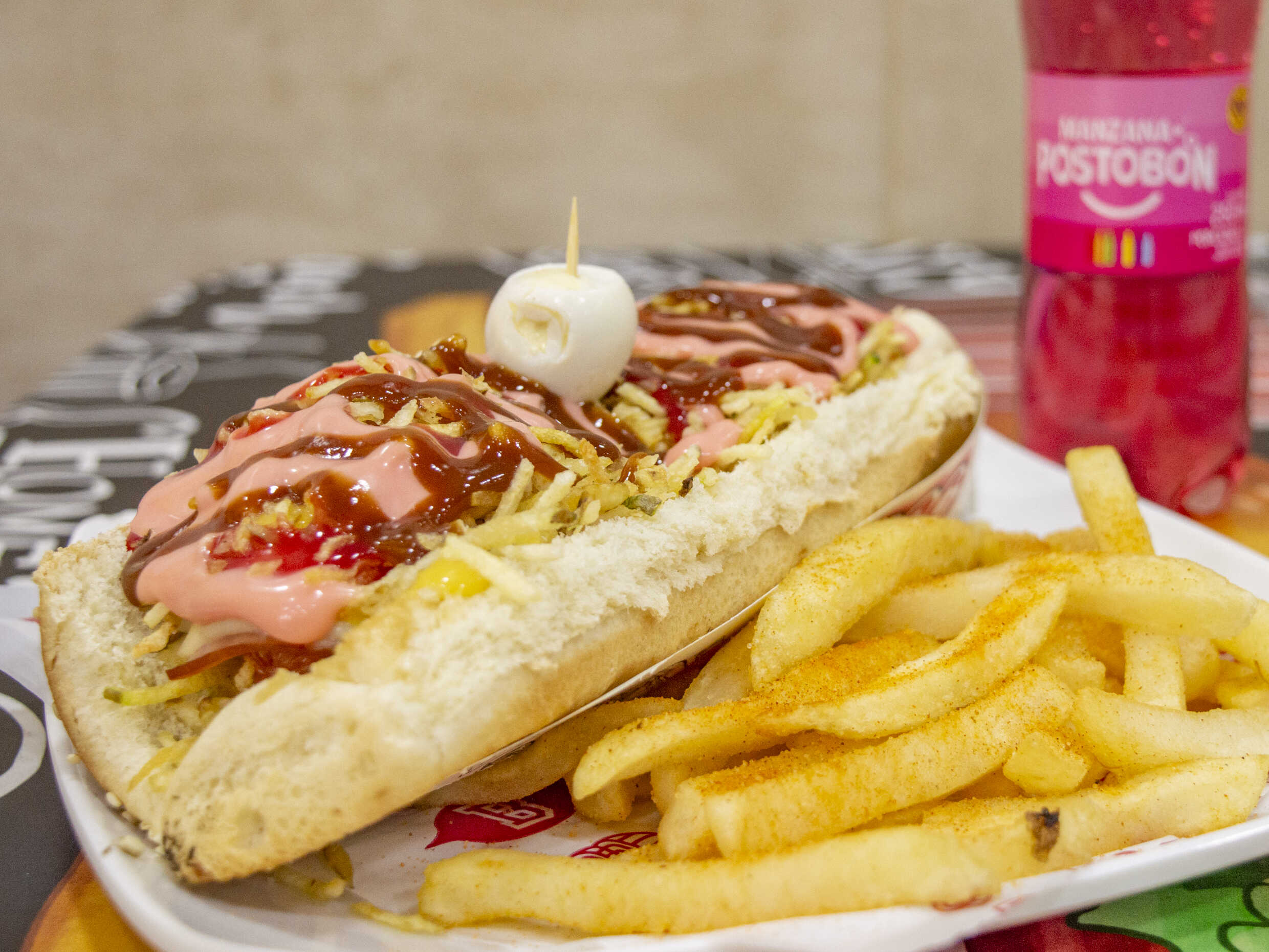 Perro Ranchero, Chorizo, Tocineta, Jamon, Champiñones, Huevos de codorniz, Maiz tierno, Doble Queso, papas en fosforo & Salsas