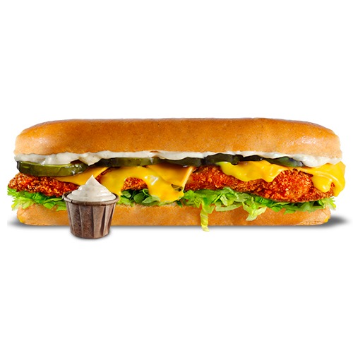 Sandwich de 38cm (pechuga de Pollo Apanada,pepinillos,queso Amarilo,mostamiel de la Casa, Lechuga y Salsa de Ajo).