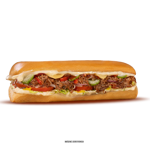 Roast Beef, tomate, queso mozzarella, lechuga, salsa BBQ y salsa Qbano.