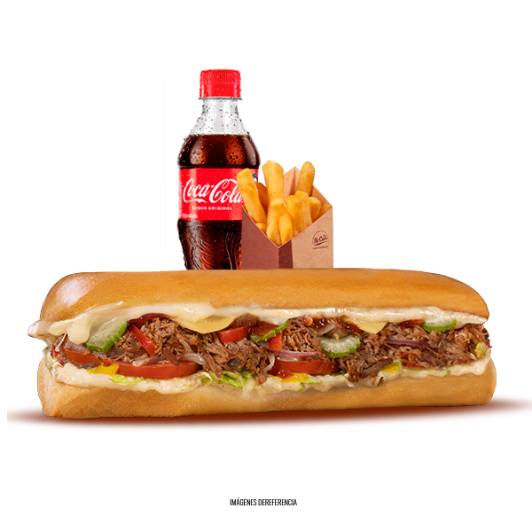 1 Sándwich Personal 21cm Pollo Bbq + 1 Papas Pequeñas + Coca cola
