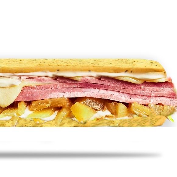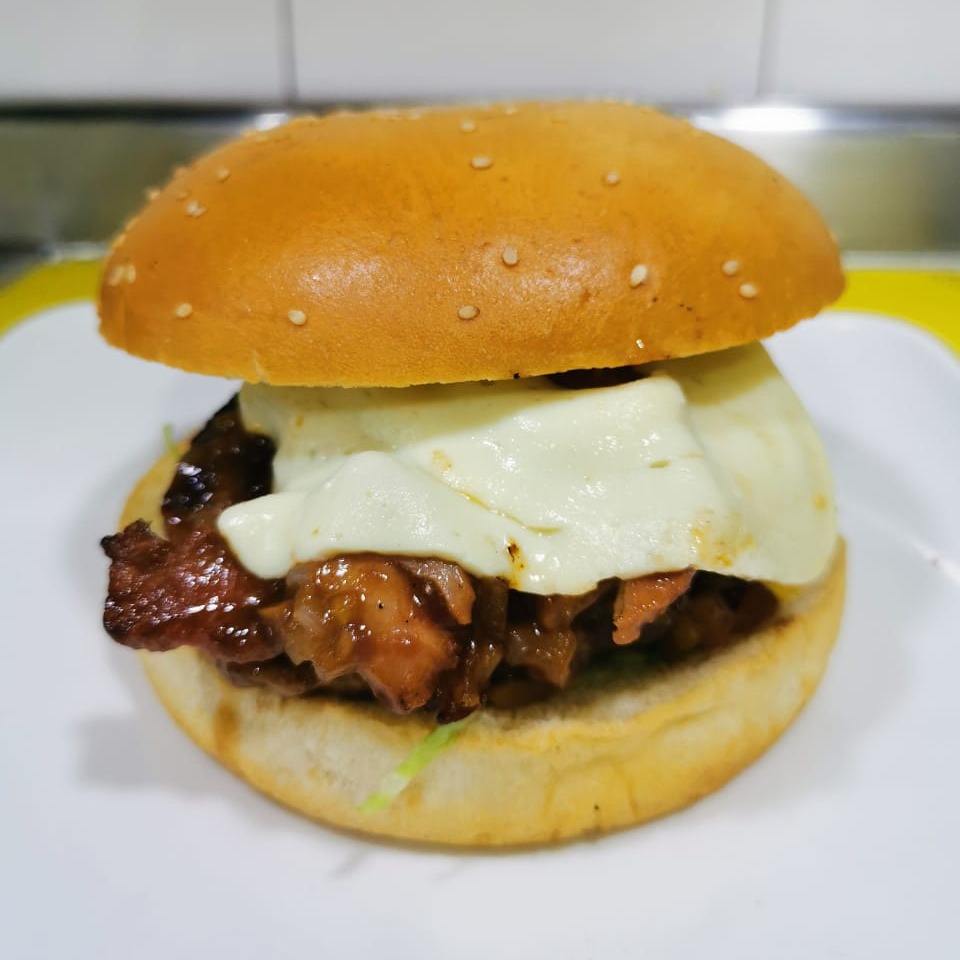 lomo de cerdo y chedar,cebolla salteada MICHIGAN23