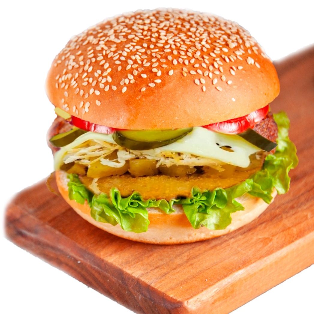HAMBURGUESA apanada y pepinillo y piña