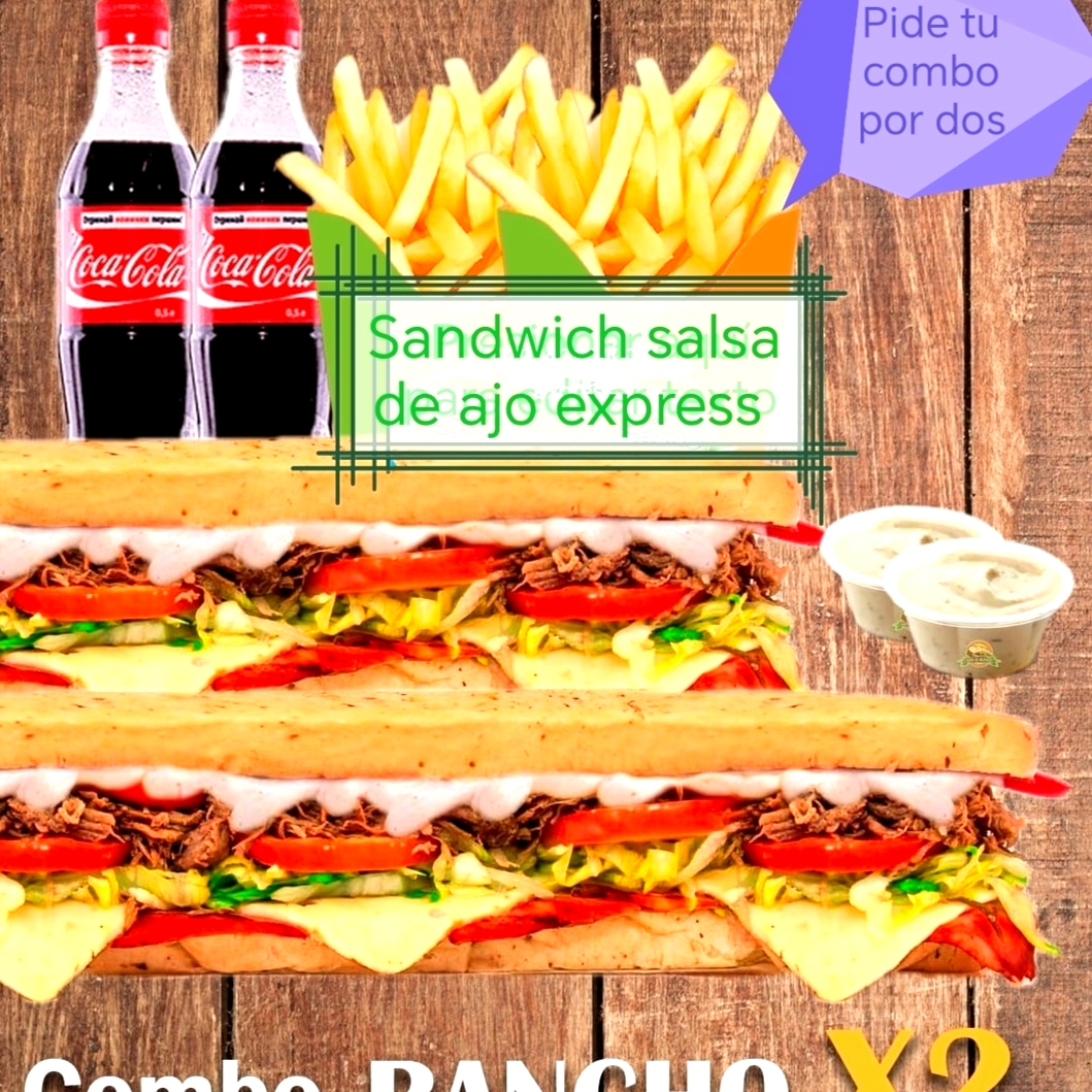 Combo Ropavejero por 2 Papas ,2 Sandwich,2 Gaseosa