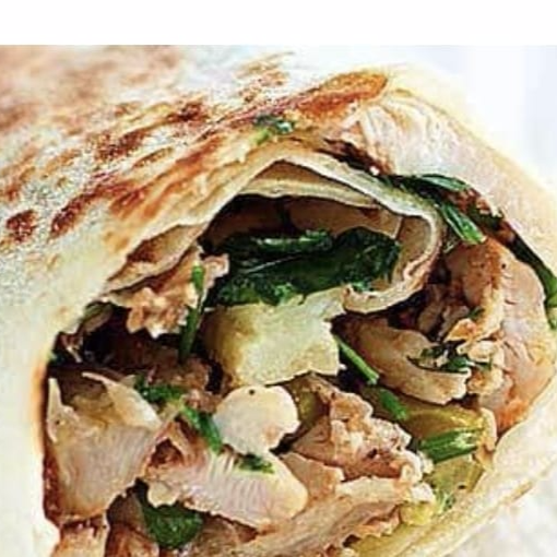Lomo de res en tiras, pechuga en tiras, cebollas asadas con champiñones, queso cheddar, vegetales (tomate, lechuga) y salsa de queso cheddar.