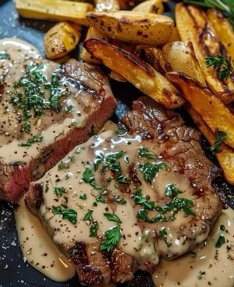 Jugoso lomo de cerdo o res bañados en salsas de la casa a la pimienta acompañado de ensalada, yuca, papas francesas o criolla.