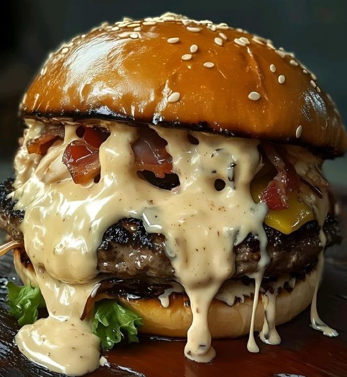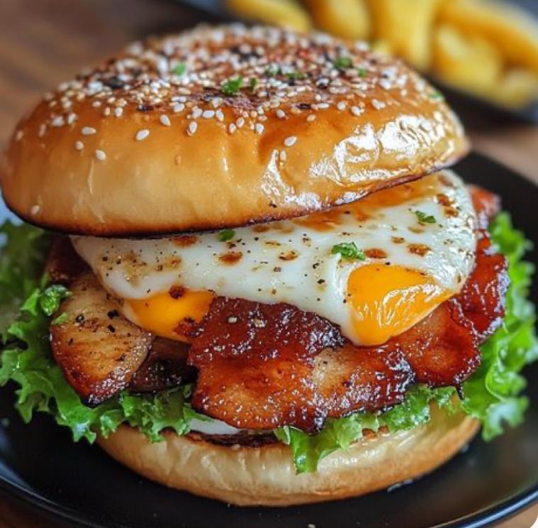 Pan brioche, 180 g de carne artesanal, queso cheddar, huevo frito, ahogao y tocineta, vegetales y salsas de la casa.