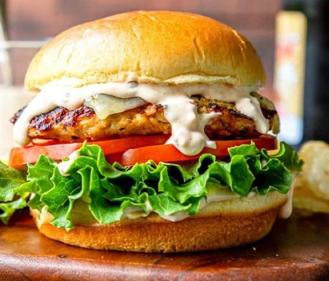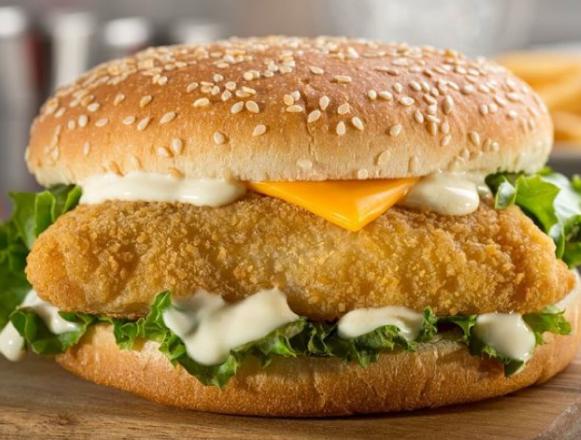Pan brioche, 180 g de carne artesanal, filete de pescado apanado, camarones en salsa marinera, doble queso doble crema, vegetales y salsas de la casa.