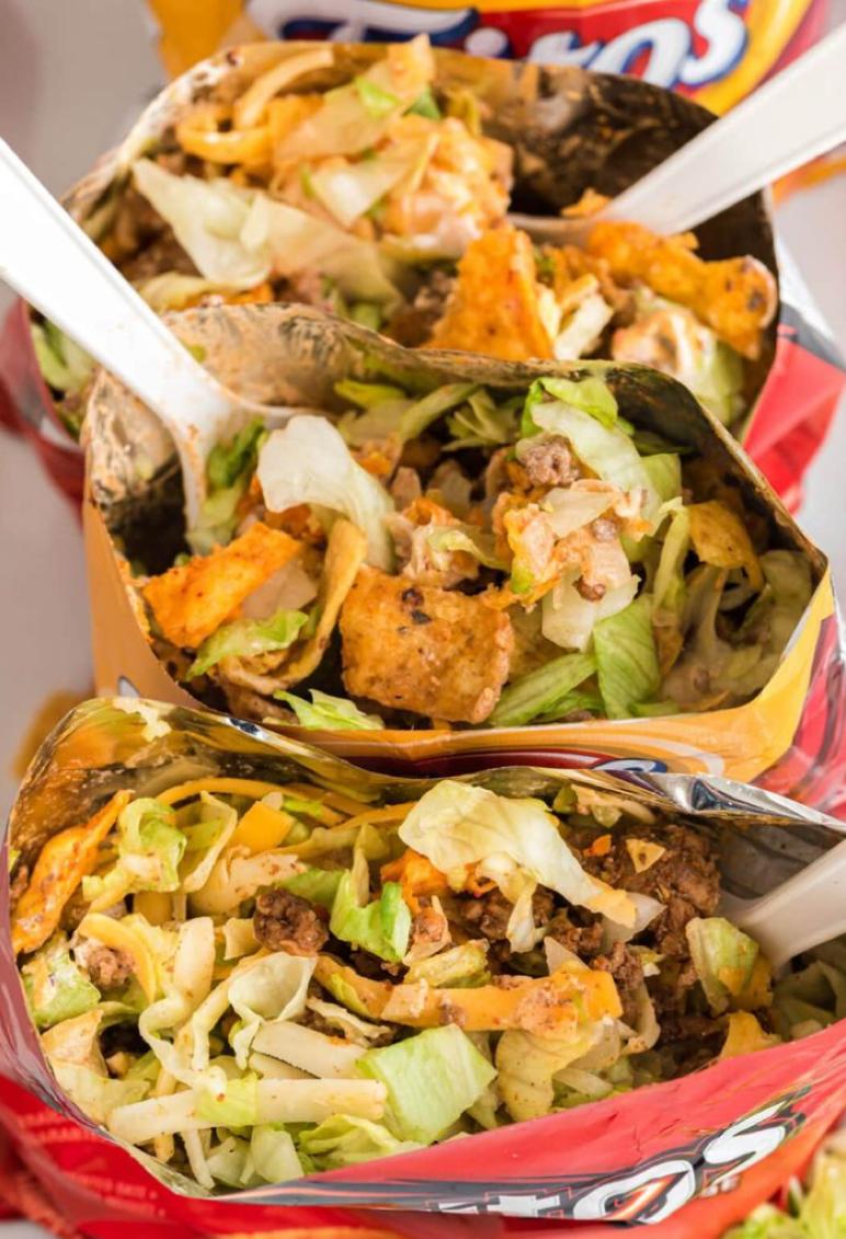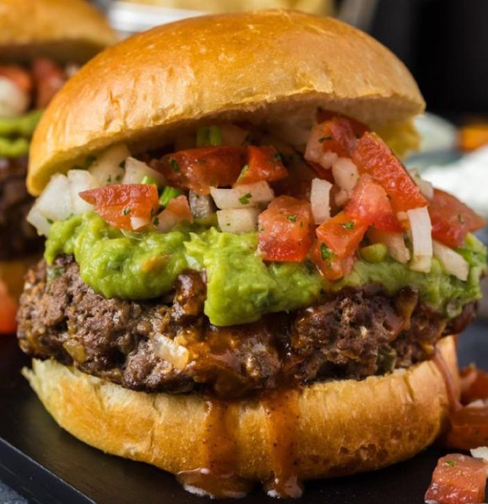 Pan brioche, 180 g de carne artesanal, queso cheddar, chile con carne, totopos, pico e' gallo, guacamole, vegetales y salsas de la casa.