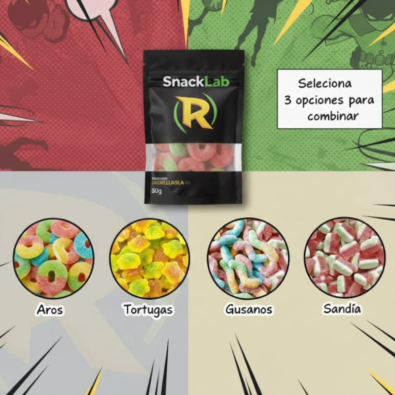 Una combinación ágil y divertida. Mezcla de tres sabores de gomitas clásicas, bañadas en chamoy, limón y un toque de picante. Ideal para probar varios sabores sin irte a lo extremo. 🔥 Picante: suave–medio 🍬 Incluye: mix de 3 sabores 👤 Ideal para: antojo ligero Contenido: 50 g 📌 Nota: El diseño del empaque y el nombre del nivel no son originales ni oficiales. Se utilizan únicamente como refe