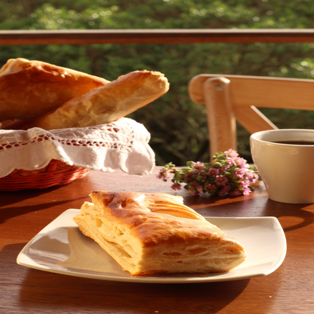 Pastel de hojaldre relleno de piña y jamón.