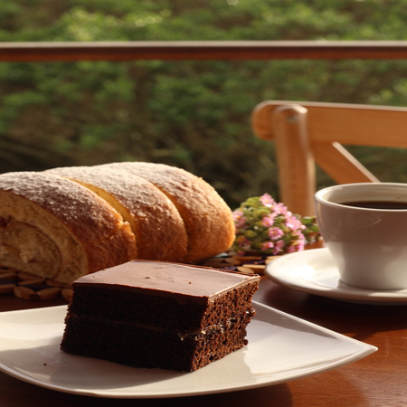 Exquisito bizcocho de chocolate con una capa de chocolate.