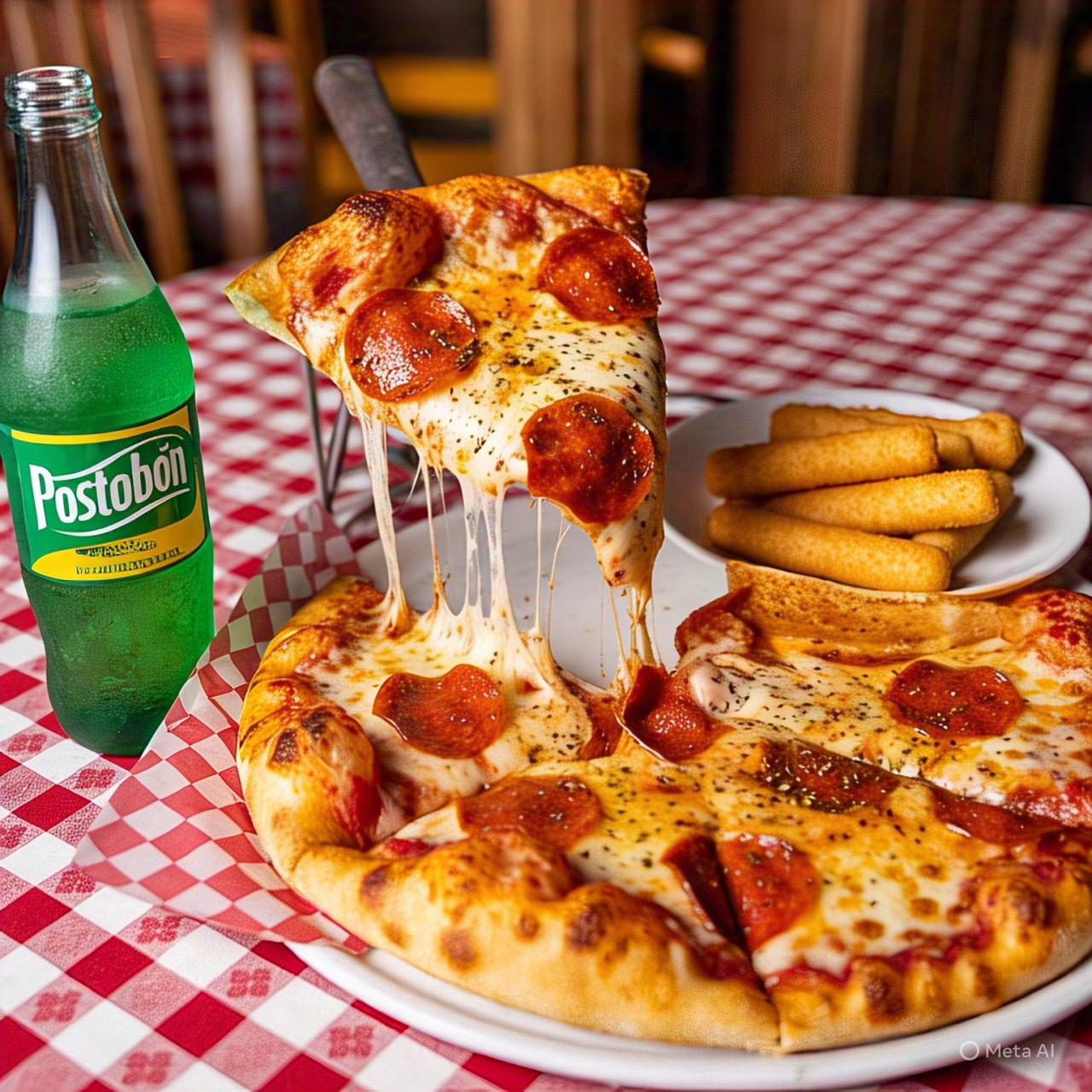 Pizza de 40 cm puedes elegir hasta 4 Sabores + Deditos de Queso + Postobon 1 L