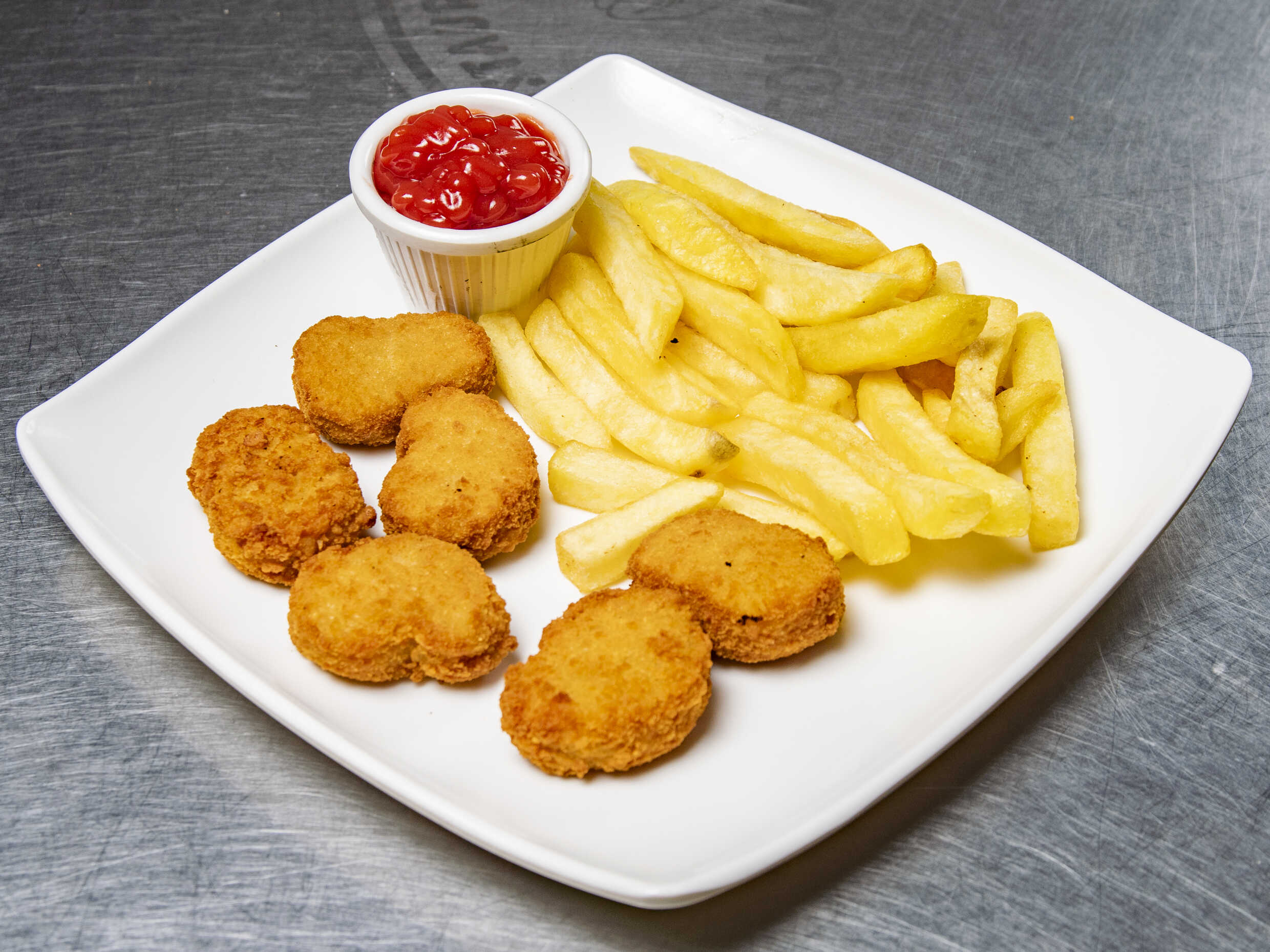 8 Unidades de Nuggets Pollo con papas a la francesa y salsa de la casa