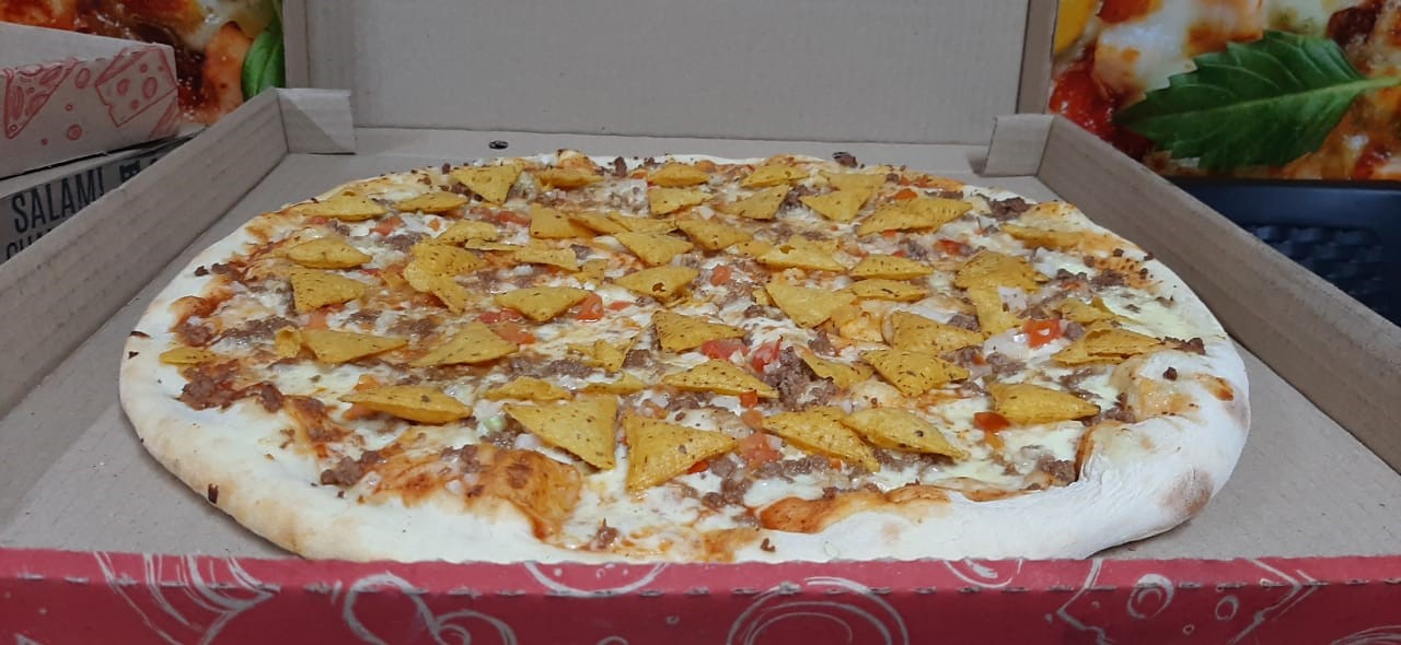 Si eres amante de la comida italiana esta pizza te va a encantar, sobor macarroni en salsa boloñesa, queso y especias.