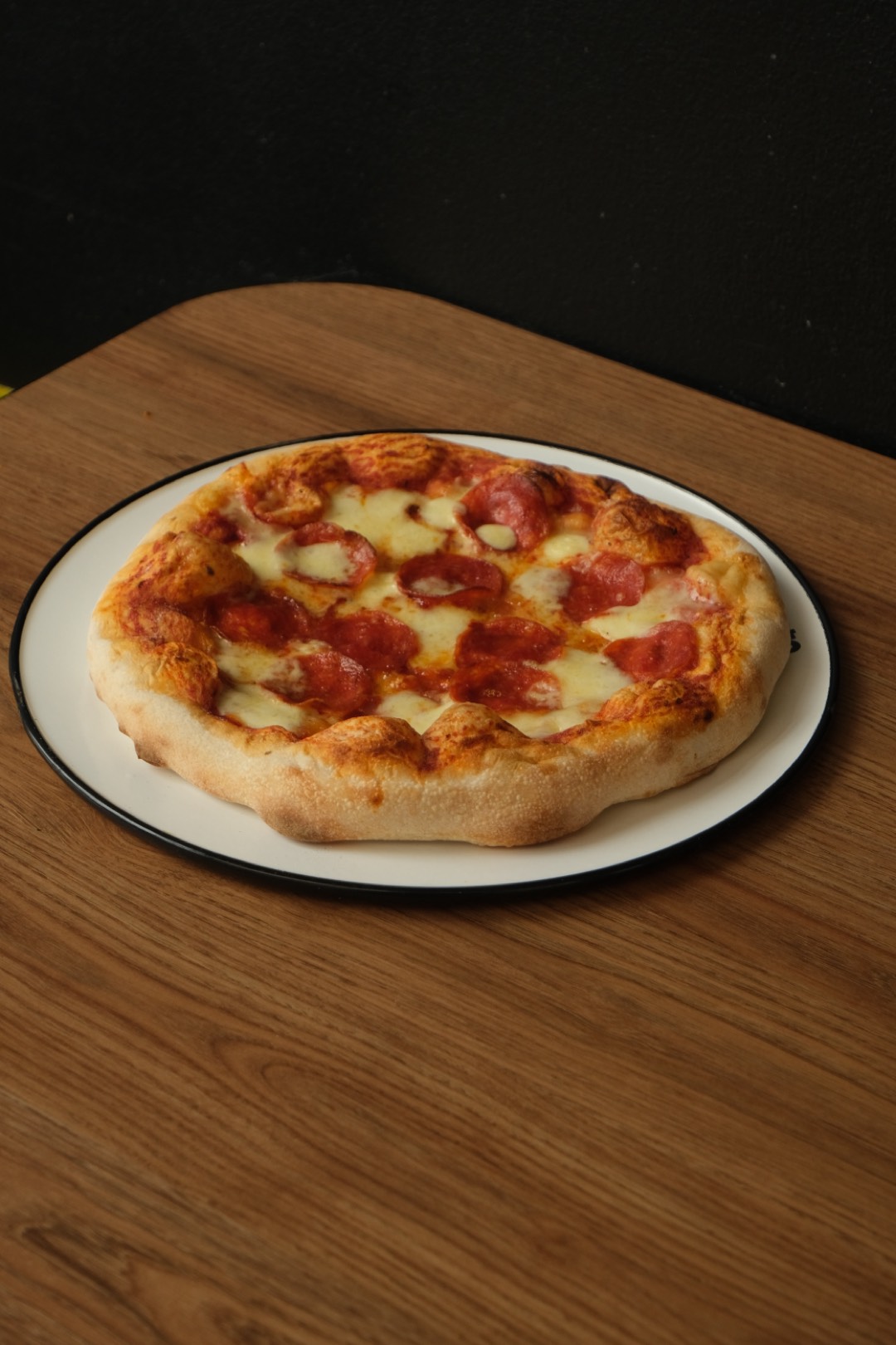 Pizza de 4 porciones con base artesanal, salsa pomodoro, peperoni y queso mozarella gratinado