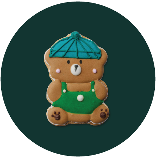 Galletas de vainilla decoradas a mano con diseños únicos de temporada. Suave textura y delicado sabor clásico, perfectas para acompañar tu bebida y endulzar cualquier momento.