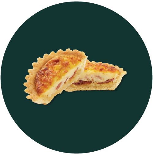 Tarta de Tocienta y QuesoAl estilo quiché: masa crocante con relleno cremoso de huevo, queso y tocineta ahumada.