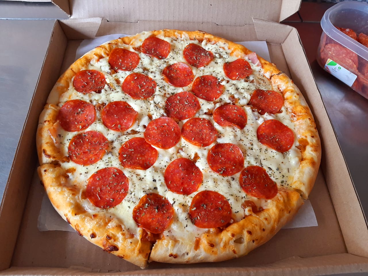 Pepperoni, salsa de la casa y queso.