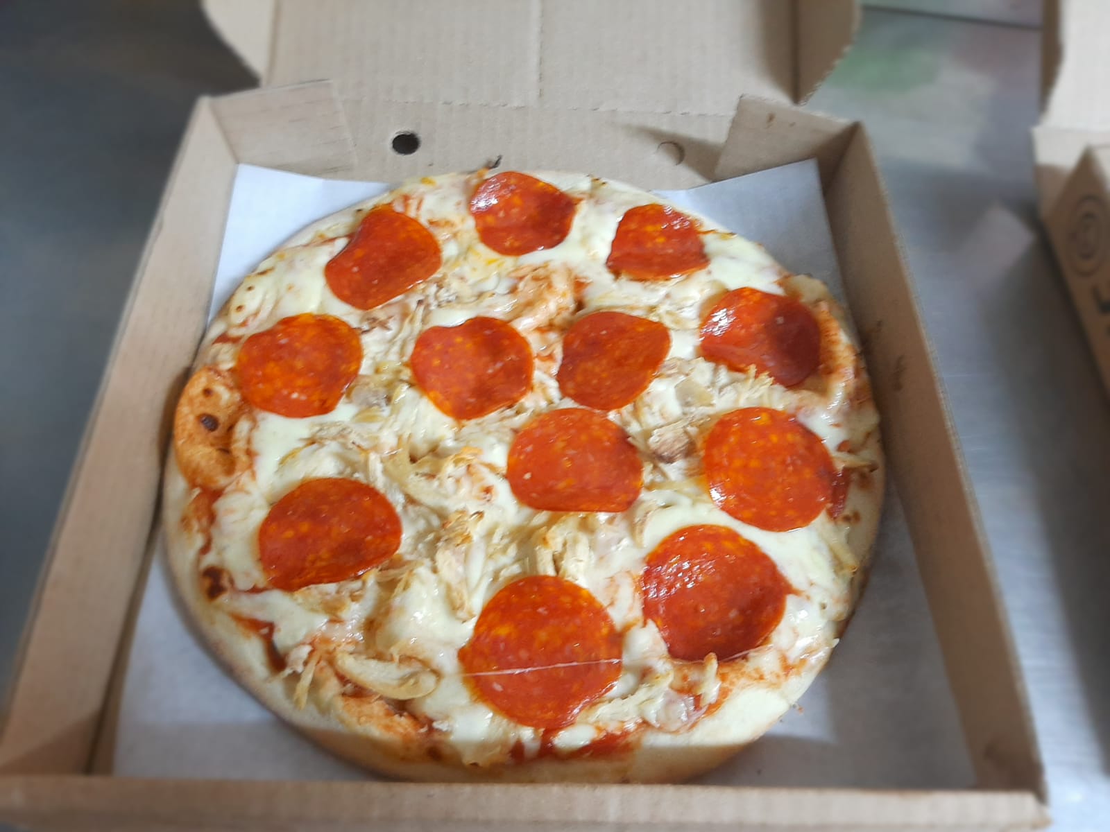 Pollo, pepperoni, salsa de la casa y queso.