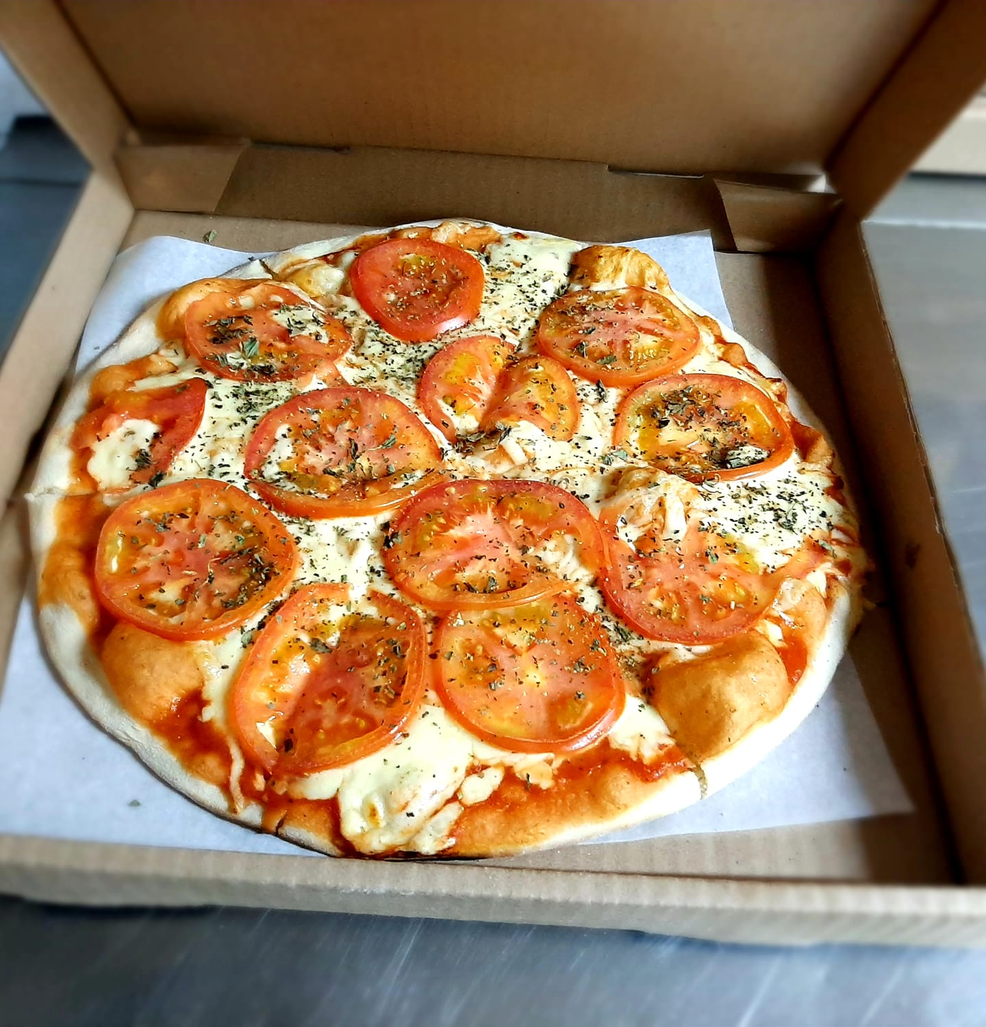 Tomate, orégano, salsa de la casa y queso.