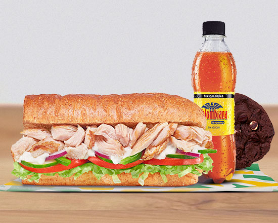 Ahorra llevando tu Sub de Pollo Rostizado de 15 cm en combo. Arma tu sub y elige tu bebida y papas o galleta para acompañarlo.