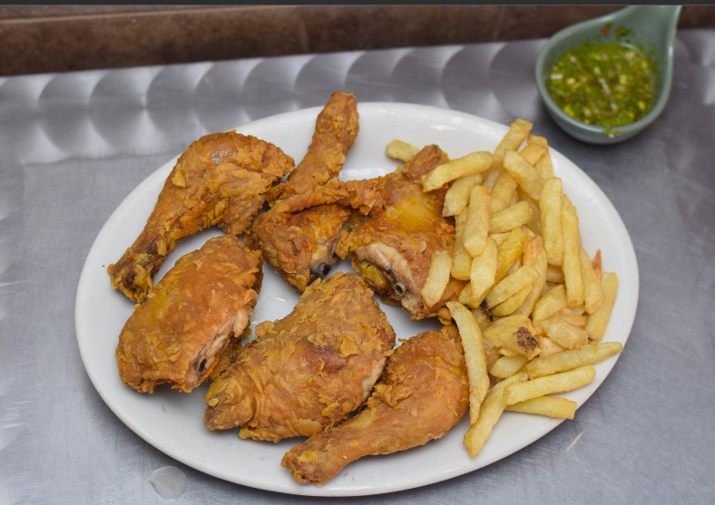Medio pollo broaster acompañado de papa a la francesa artesanal.
