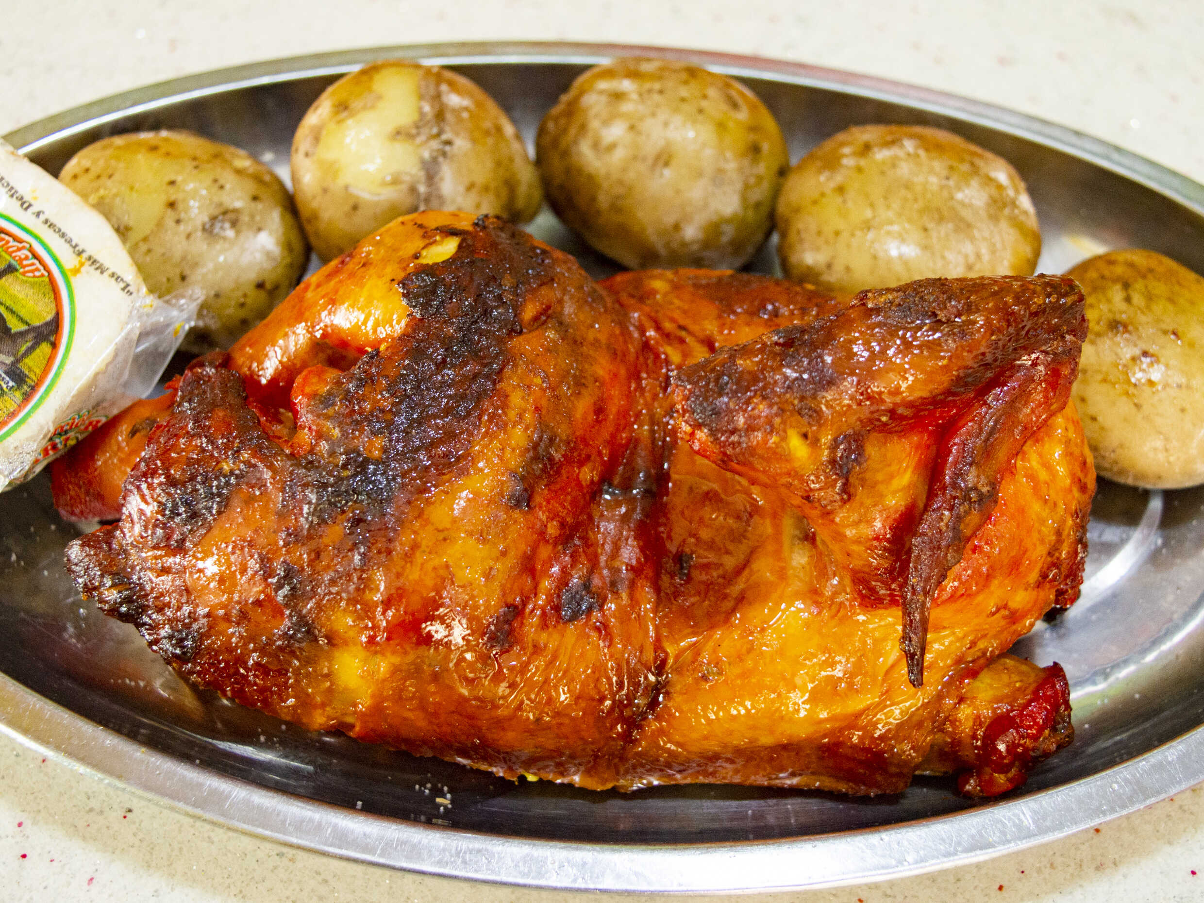 1 pollo asado, carne de res, carne de cerdo, pechuga, chorizo, papa salada, papa francesa, yuca, patacón y gaseosa 1.5 L.