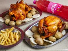 2 Pollos Asados, papas saladas, arepas y gaseosa 1.5 L Postobón (sujeto a disponibilidad de la tienda).
