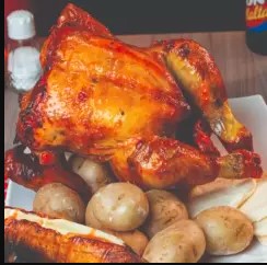 1 Pollo Asado, papa salada, arepas, plátano sencillo y gaseosa 1 L Postobón.