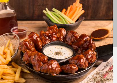 Arroz con Pollo, 10 Piezas Alitas BBQ y Limonada