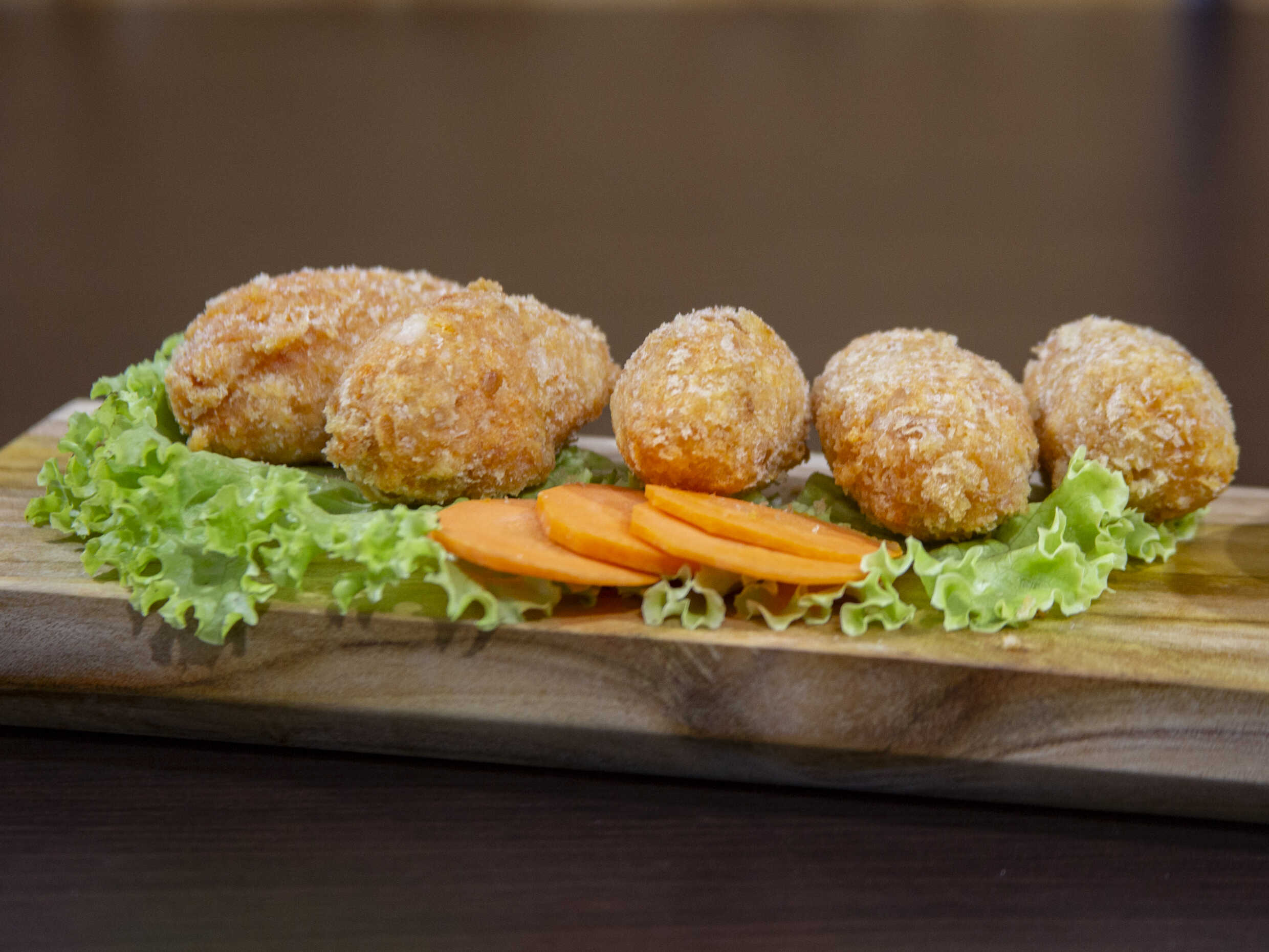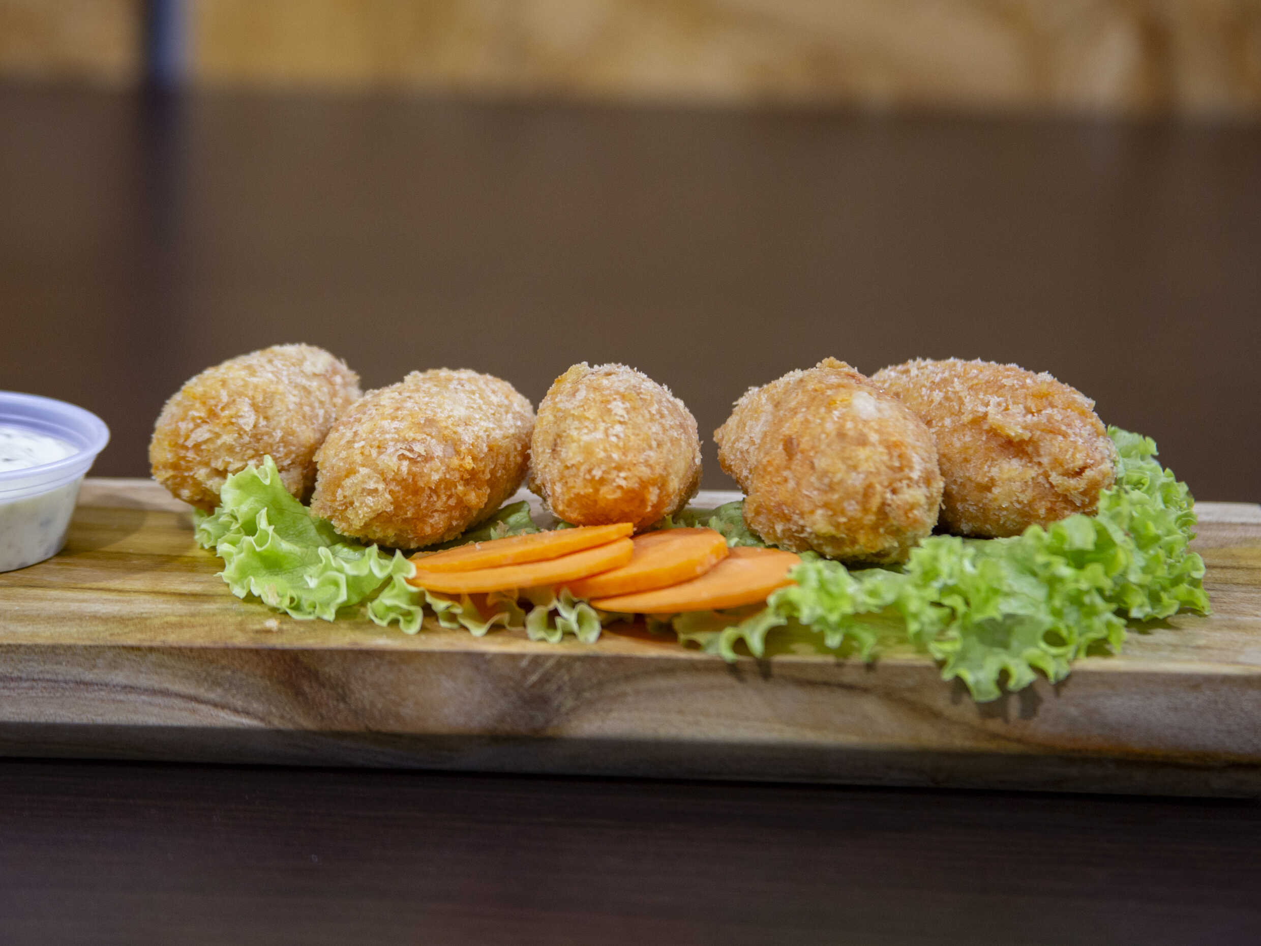 5 Croquetas de pescado blanco acompañadas de salsa tártara.