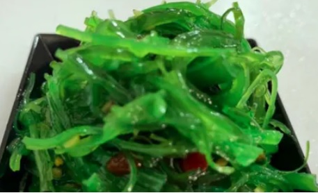 Espárrago, wakame, aguacate, melocotón, pepino y hojas de arroz con salsa de la casa. Reducción de jugo de naranja o maracuyá, miel y mayonesa.