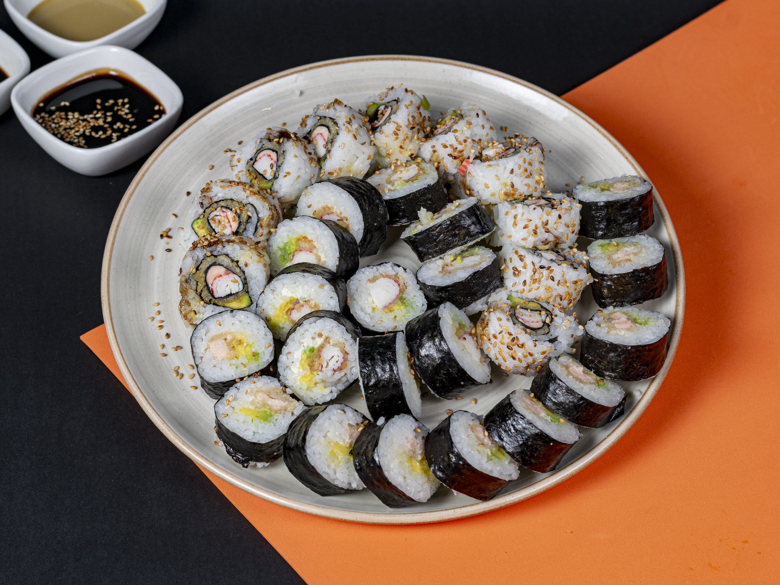 Sushi : 10 piezas de philadelphia crispy, 10 piezas de salmón skin especial, 10 piezas de oasis roll.