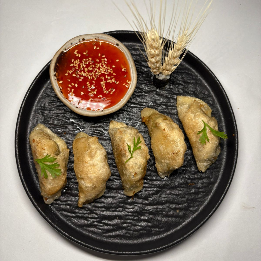 5 Unidades de gyosas fritas, rellenas de camarones salteados acompañadas de salsa sweet chili.