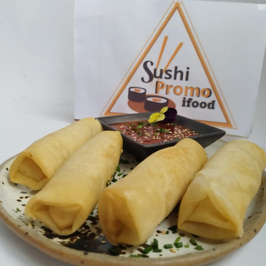 4 Rollitos fritos rellenos de vegetales salteados. Acompañados de salsa de la casa.