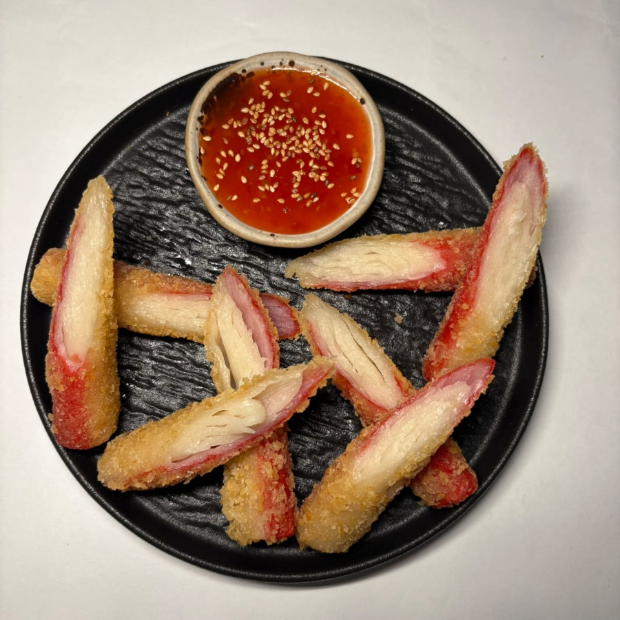 4 Palmitos de cangrejos crocantes. Bañados en salsa mayosirasha.