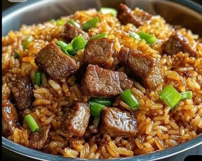 Arroz salteado con Carne de res y vegetales frescos.