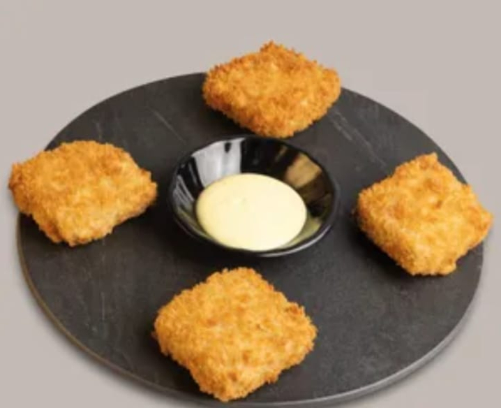 Palmitos de Cangrejo apanados, servidos con la especial salsa de la casa.
