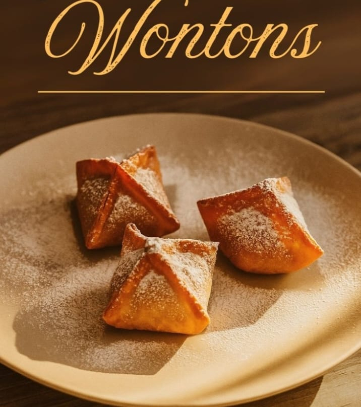 4 unidades de Wontons rellenos de arequipe y queso crema. Bañados en leche condensada.