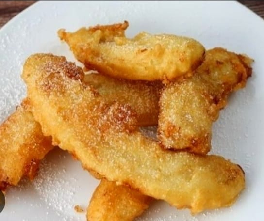 5 unidades de Banana tempurizada, crujiente y dulce, bañada en leche condensada.