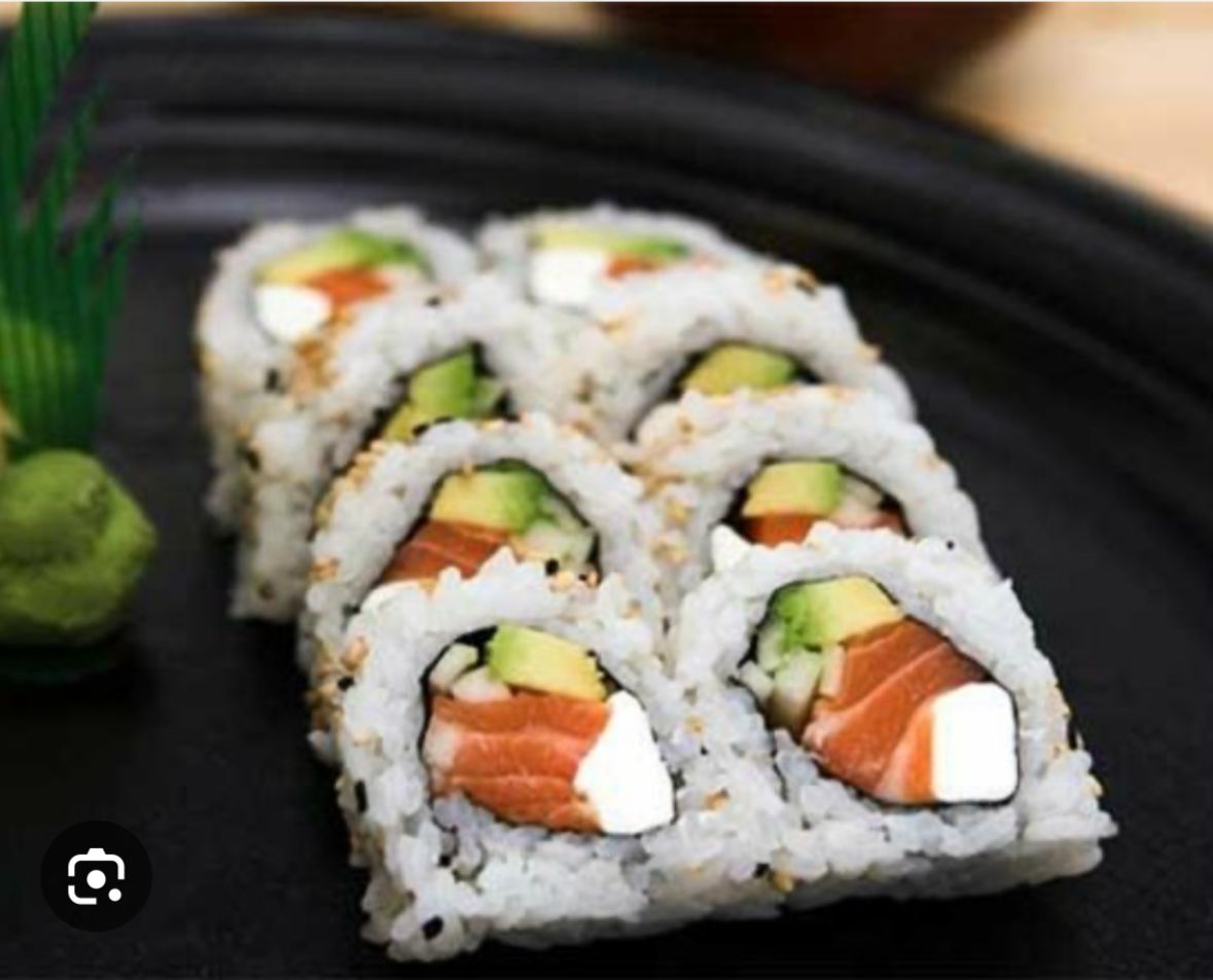 Tradicional rollo de queso filadelfia, salmon y aguacate